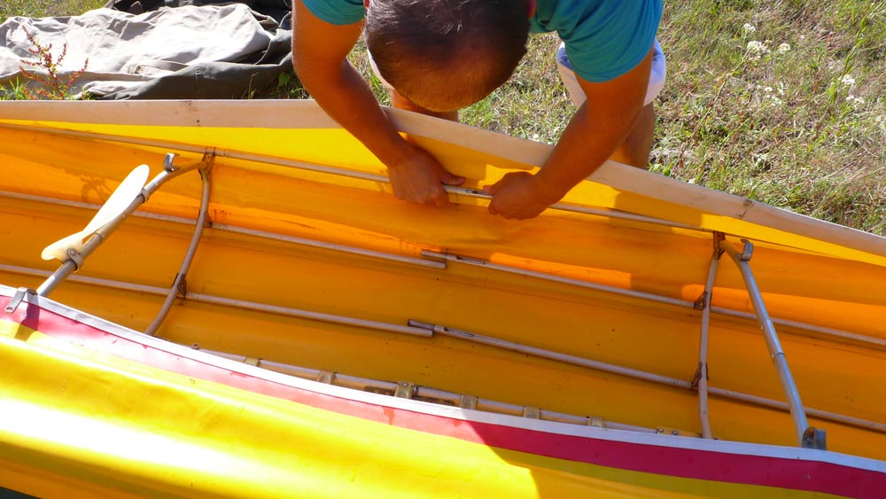 Какая-то группа закончила сплавляться по Днестру на катамаранах как раз на месте нашего лагеря, поэтому нам предложили сменить транспортное средство. Все единогласно согласились, на катамаранах сплавляться как-то повеселее: они гораздо устойчивее на воде, легче держать равновесие, можно прилечь, можно искупаться на ходу. Поэтому утро пришлось начать с разбирания байдарок и укладывания их в транспортное положение.